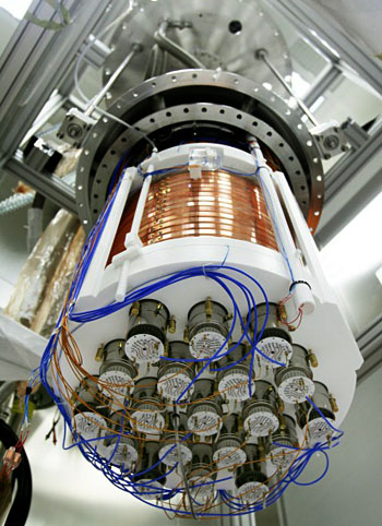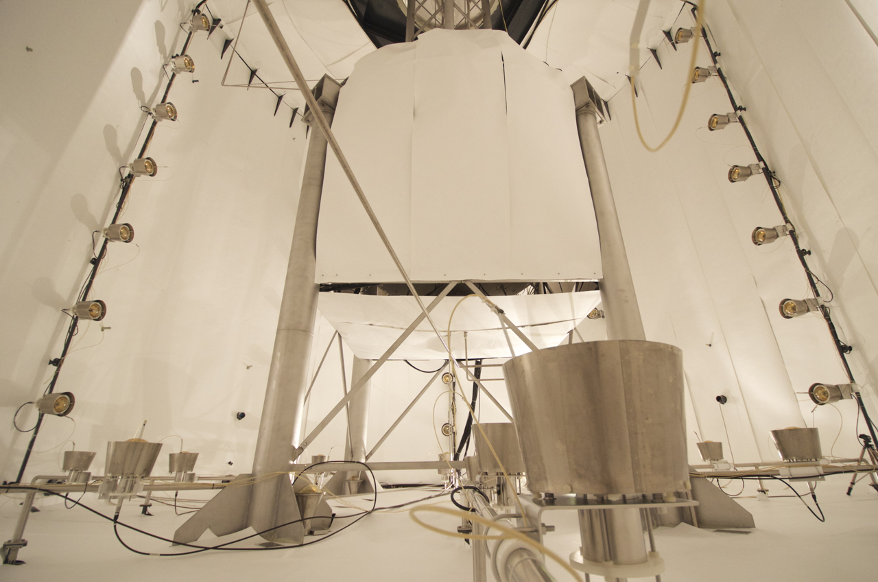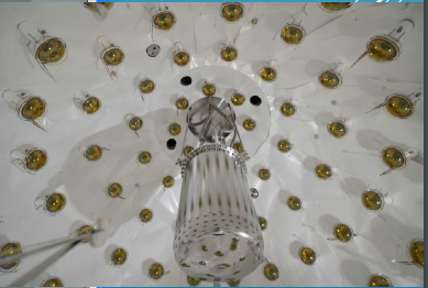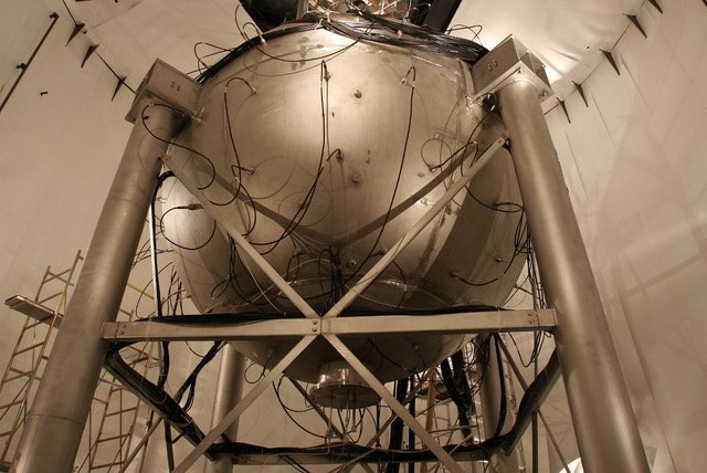 Right: Inside the water tank, prior to installing reflector and filling the detectors