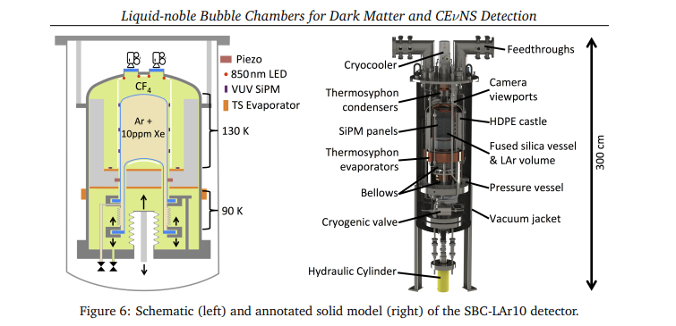 Left: Schematic and annotated solid model of the SBC-LAr10 detector